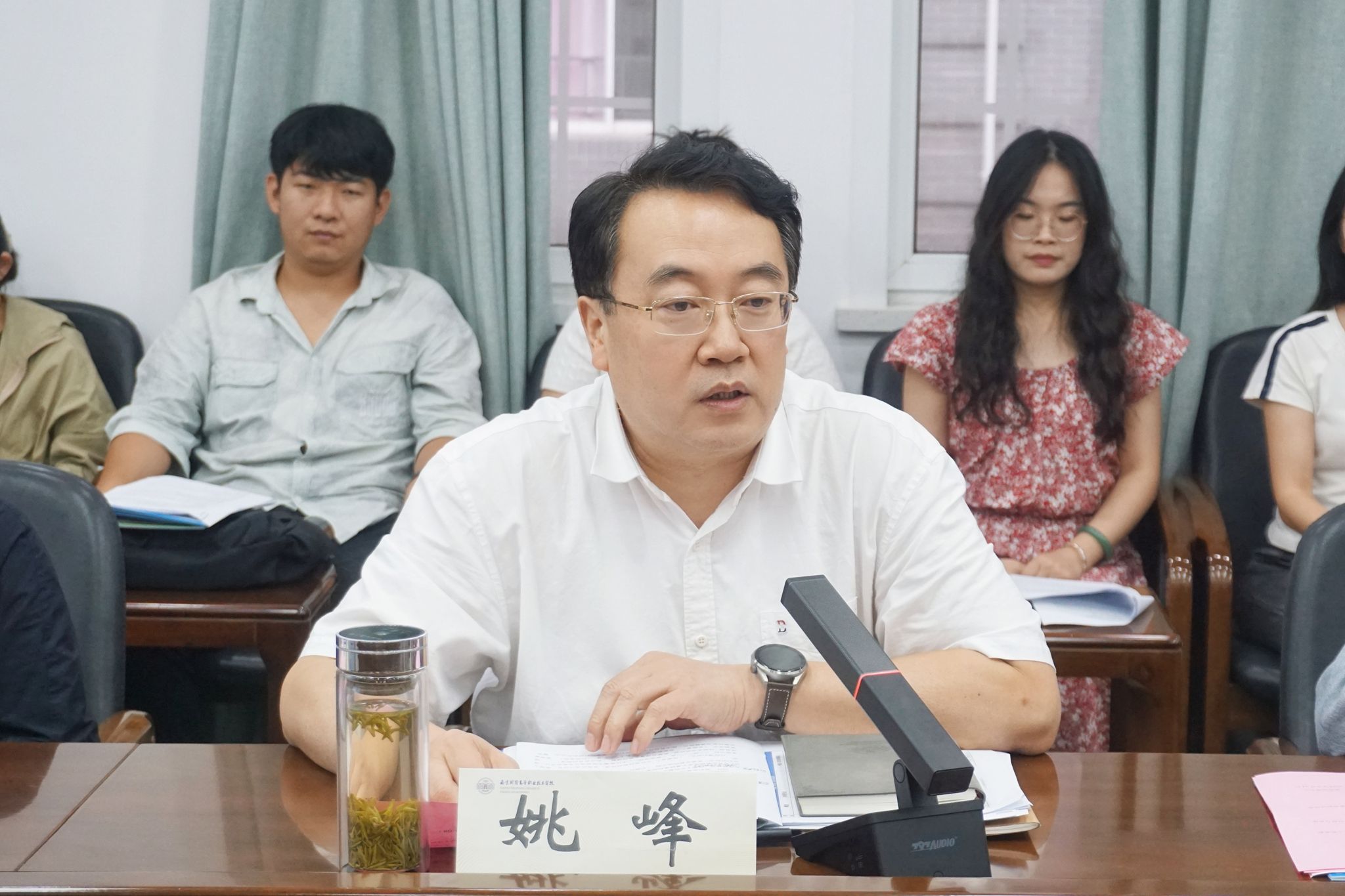 姚峰进行总结讲话。他对圆满结业的12名教师表示祝贺,对师傅们的贡献表示感谢,对学员们取得的丰硕成果表示肯定。他表示,通过两年的研修学习,学员们的教学思路更加清晰、技能储备更加扎实、育人信心更加充足,必将成为学校师资队伍的坚实力量。针对新一届师徒结对工作,姚峰对师傅和徒弟分别提出了“三师”和“三心”的期望和要求。他希望师傅们能够当好“教学导师、科研导师、人生导师”,在课堂教学、教育科研以及引领新教师成长道路等方面,都能发挥“传帮带”精神,助力新教师快速成长。青年教师则要怀着“虚心”“用心”“创新心”来面对自己的职业生涯。拜师学艺既是机遇更是责任,新教师们要努力学习,不断探索,在传承优秀经验的同时,大胆尝试新的教学方法和育人模式,结合自己的优势尽快形成特色和风格。